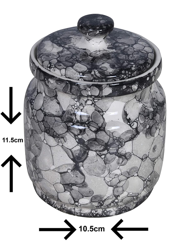 RAJ ROYAL Ceramic Serving Pot Modeling Clay Grey Pottery Handmade Painted Cornichon Crockery Pulses Rice Dry Fruit Pickle Storage Jar for Dining Table Kitchen Set Storage Canister (Grey) – 500 Grams